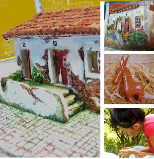 Aprendizagem da técnica utilizada em cerâmica executando modelos de Casinhas algarvias, ou animais da quinta.