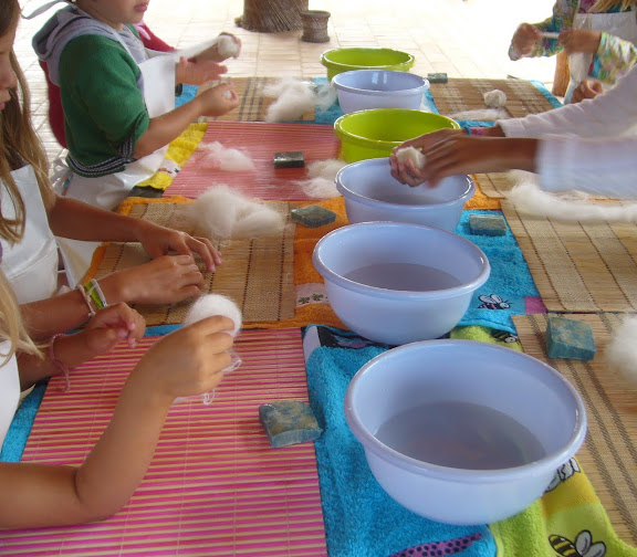 Depois com o auxílio de água é moldada na forma desejada, de seguida procede-se à sua decoração com lã tingida das mais variadas cores e motivos. Finaliza-se pressionando com as mãos, com bastante água e sabão, fazendo com que as fibras de lã se entrelacem e se agarrem, produzindo assim uma estrutura muito forte e, em simultâneo, bastante moldável. Resultando trabalhos bem personalizados e coloridos.